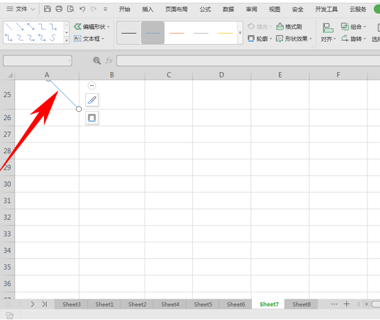 1、使用WPS Office打开表格,单击工具栏“插入”下的“形状”,在下拉菜单下选择直线。