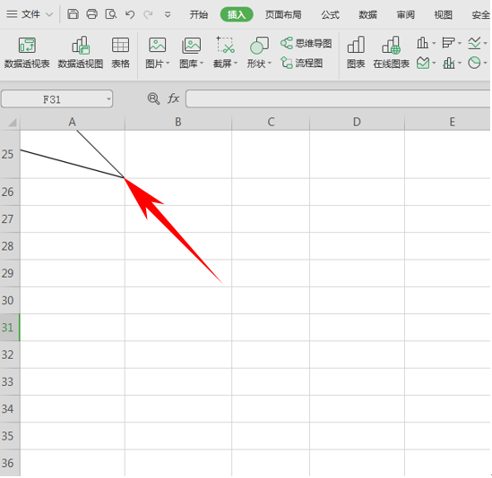 3、再插入一条直线,将直线插入到表格的中间位置,如下图所示。