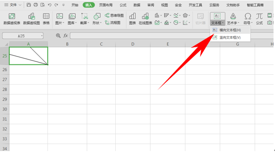4、插入文本:单击工具栏插入下的文本框,在下拉菜单下选择横向文本框。