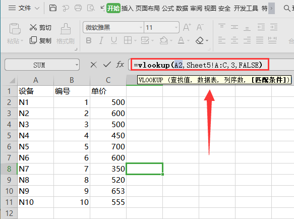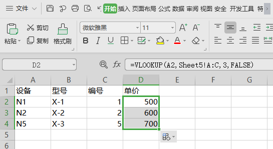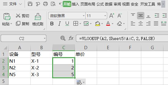 同理:在表1的D2单元格输入=VLOOKUP(A2,Sheet5!A:C,3,FALSE)。