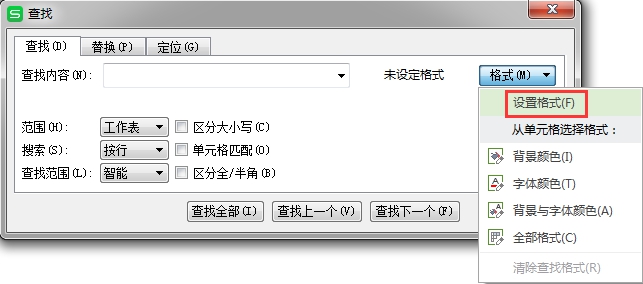 使用WPS Office打开表格,打开查找(CTRL+F)功能。