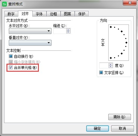 点击“选项”,在格式下“设置格式”,找到“对齐”,勾选“合并单元格”确定,再点击“查找全部”。