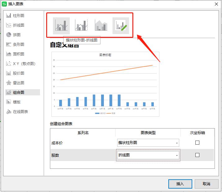 3、根据需要选择“组合图”的类型及样式。
