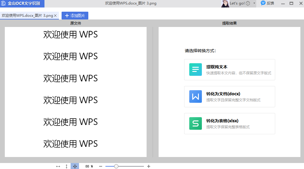 接着在弹出的“金山OCR文字识别”界面选择转换方式即可。