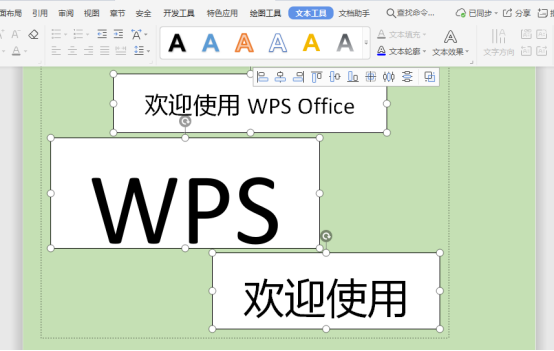 1、 使用WPS Office打开文档,按住Ctrl键选中需要调整的多个文本框。