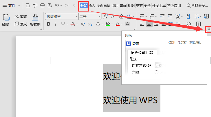 选中需要进行设置的区域,依次点击“开始”--->“段落”。