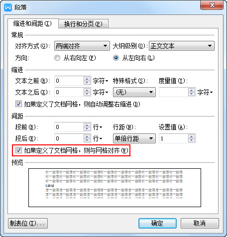 在“段落和间距”中勾选“如果定义了文档网格,则与网格对齐”行距都是在内容上下一起改变的。