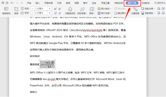 如需对公式进行美化,可选中公式后,点击“图片工具”进行调整即可。