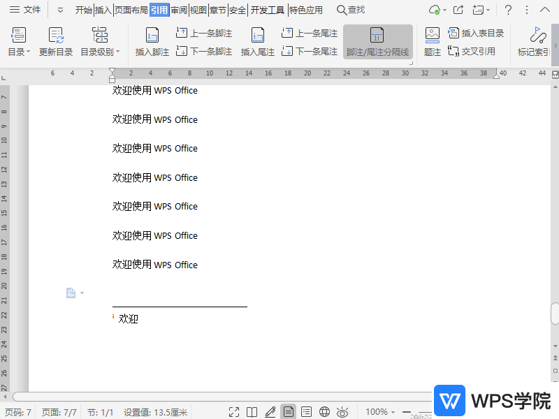 使用WPS Office打开文档,选中尾注的标识,按“Delete键”删除即可。