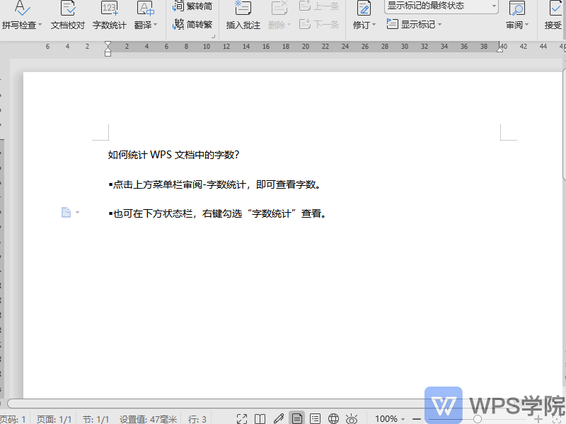 WPS如何统计 WPS文字(Word)中的字数?