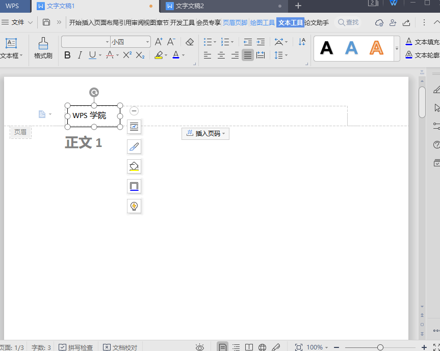 ?将光标放在页眉编辑处,点击「插入」选项卡-「文本框」,绘制一个文本框。在文本框中编写页眉内容,调整大小与位置。
